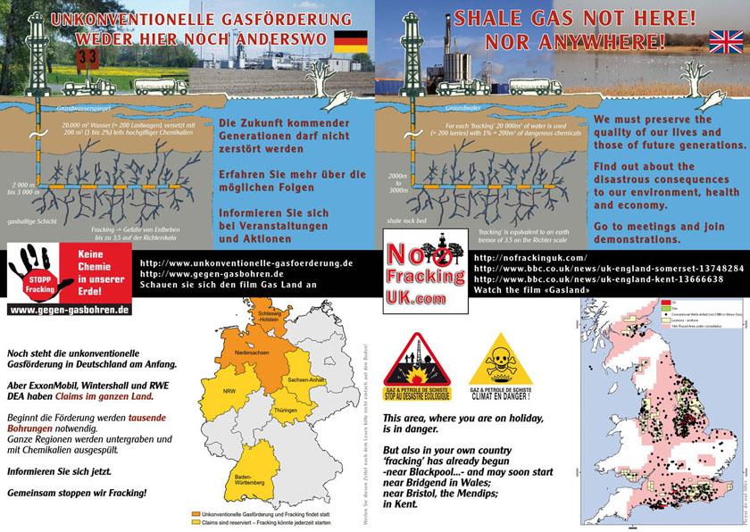 Mit einer gemeinsamen Flyer-Aktion starten die Bürgerinitiativen gegen Hydraulic „Fracking“ Fracturing aus Frankreich, Großbritannien, den Niederlanden und Deutschland in die Ferien.